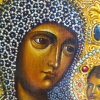 A special feature of the painting is the background against which the Mother of God and the infant Jesus are depicted. The background is a complex ornament consisting of many small details resembling flowers, stars, and precious stones. This ornament, executed in various shades of gold, red, and blue, creates a feeling of luxury, majesty, and divine radiance.