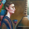 At the center of attention of the painting is a young woman sitting by the window and looking into the distance. Her pose, relaxed and uninhibited, expresses complete immersion in herself and in the surrounding sounds. The artist depicts her not in detail, but rather conveys the overall impression of her appearance, focusing on her facial expression, posture, and gestures. The woman seems both beautiful and thoughtful, as if she has found harmony with herself and with the world.