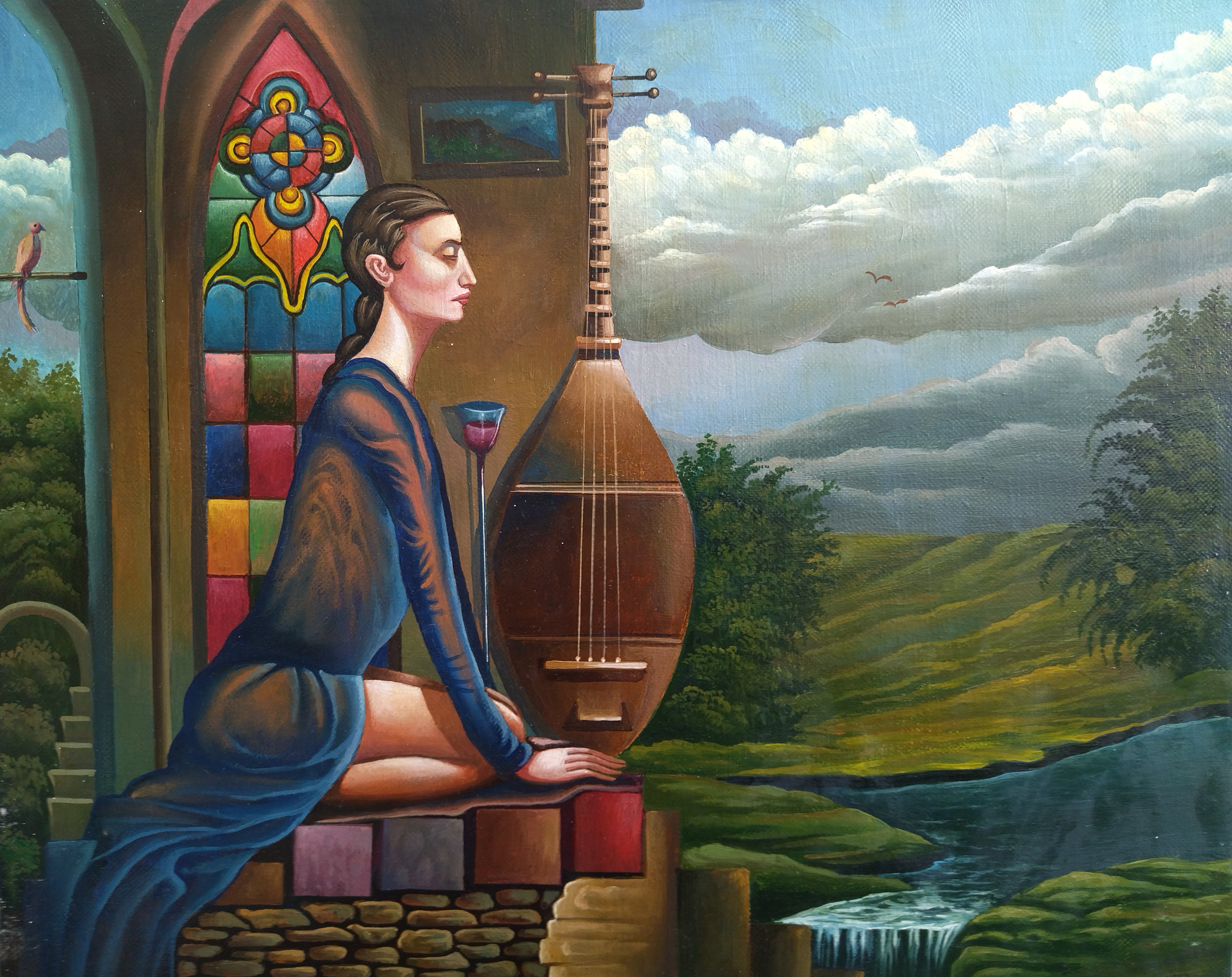 Vladimir Kuchinskiy’s painting “Listening to Birds Singing” is a picturesque and dreamy composition in which elements of realism and fantasy are intertwined, creating an atmosphere of tranquility, harmony with nature, and subtle lyricism. The artist uses a muted, yet saturated color palette and a detailed painting style to convey a sense of silence, the beauty of the surrounding world, and that special moment when a person, forgetting about everything, immerses themselves in the song of birds. It is not just an image of a scene, but like a visual embodiment of a poetic mood, filled with love for nature and a subtle understanding of the human soul.