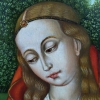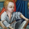 The Infant Christ, located in his mother’s arms, is depicted as a small child playing with a book. In his pose and facial expression there is nothing divine; he is simply a child eager to explore the world and experiencing his mother’s love and affection. The book he holds symbolizes knowledge, wisdom, and the spiritual path that lies ahead for him.