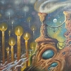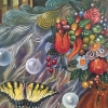 The artist uses the technique of Realism with elements of Surrealism, focusing on the detailed rendering of each object and creating an overall atmosphere of mystery and unreality. Bright, saturated colors that combine with each other create a sense of liveliness and dynamism.