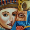 Vladimir Kuchinskiy’s painting “Stranger” is a complex and multifaceted composition in which the portrait of a woman is combined with a kaleidoscope of images and symbols, creating a sense of mystery, dreaminess, and the multi-layered nature of the human soul. The artist uses a bright, saturated color palette and a detailed painting style to convey an atmosphere of mystery, internal struggle, and the search for one’s place in the world, characteristic of the stranger’s image. It is not just a portrait, but like a window into the subconscious, where memories, dreams, and fears intertwine, shaping the personality of a person.