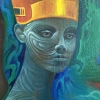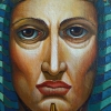 At the center of attention of the painting is a large image of a face enclosed in a pharaoh’s headdress. The facial features, executed with special care, express calmness, wisdom, and majesty. In the eyes, one can read depth and experience, as if he has comprehended the secrets of the universe and knows the answers to all questions. This image of the pharaoh is a key symbol of the painting, embodying the power, strength, and divine nature of the rulers of Ancient Egypt.