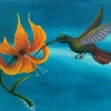 Above the woman’s head hovers a hummingbird, bright and small. Her flight seems to symbolize lightness, freedom, and elusiveness. The bird accompanies the woman in her quest for the sky, adding an element of liveliness and dynamics to the composition.