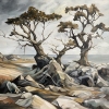 The author believes that the trees in the painting symbolize the human race. They represent a strong family, able to withstand any difficulties.: storms, winds, scorching sun and drought. This image conveys the idea of resilience and strength. To fully understand the meaning of this work of art, it may take some reflection on the philosophical aspects.