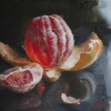 In the center of the canvas is a peeled tangerine, partially split into segments and brightly lit against a dark background. The contrast between the rich orange color of the pulp and the deep shadows creates a dramatic lighting effect. The painting is called "Danko", and one can see in this a memory of a burning heart and an inner light that warms everything around. The work is filled with inner energy, dynamics and symbolism - as a reminder that even in simple things you can find beauty, warmth and inspiration.