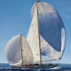 Gentle clouds, boundless sea expanses… All attention is taken by a magnificent sailing ship. He sails at full sail towards his dreams. The commander had just given the command "Left aboard!", so the ship tilted slightly, causing fluffy sea waves to appear. The ship seems to float above the water, thanks to the magical white sails.