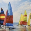 Darina Abramova's painting «Preparation» is a vivid and dynamic study capturing the atmosphere of pre-start excitement in sailing. The artist depicts the moment when a fleet of light sailing catamarans maneuvers while awaiting the signal to begin the race.