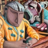 Pavel Klimov's painting "Modern Irritant PRO" is a complex and multifaceted genre scene in which the artist explores themes of contemporary society, its problems, and contradictions. He uses a vibrant yet unsettling color palette and deformed forms to create an atmosphere of tension, anxiety, and social critique characteristic of a world where technology plays an increasingly important role. This is not simply a depiction of a group of people, but rather a visual commentary on the issue of alienation, loneliness, and the impact of modern technology on our lives.