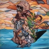 The clothes and accessories surrounding the figure are executed in bright, contrasting tones and complement the overall impression of detachment and unreality. The figure seems to be the embodiment of a multifaceted man living in a world of his own contradictions and passions.