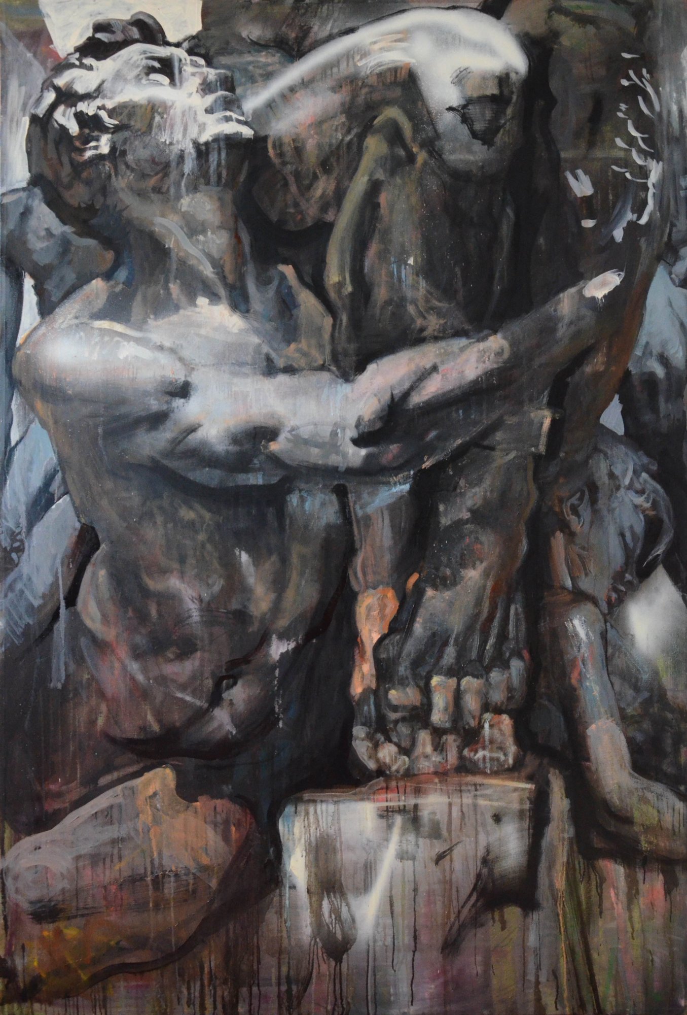 The series of canvases by Evgenia Maltseva "Brutality" is a statement about the impossibility of being a human being without suffering. It is the eternal split and fracture of a person, arising when confronted with the cruel reality of existence, that gives birth to humanity in us. Maltseva's worldview is close to ancient tragedy, glorifying a hero who accepts the challenge of merciless fate and resists it, although he understands that it is pointless. Looking into the depths of the human, the artist is inspired by the dramaturgy of ancient sculptural plasticity, which she interprets as the embodiment of the conflict between the Dionysian and Apollonian principles.