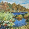 Maxim Ponurovsky's painting "Windy Day" is a landscape in which the artist captures the dynamic and changeable beauty of nature, subject to the force of the wind. Using a rich color palette and expressive technique, he creates an atmosphere of movement, energy, and a certain anxiety characteristic of windy weather. This is not simply an image of a lake and trees, but a visual embodiment of the clash of the elements, where gusts of wind create ripples on the surface of the water and sway the treetops. At the center of the painting is the lake, its surface heaved by gusts of wind. Its dark waters, seemingly alive, are constantly in motion, creating a sense of restlessness and power. The artist uses various shades of blue to convey the depth and volume of the water, as well as white brushstrokes, depicting the reflections and glare of the sun, to give the landscape a dynamic and lively quality. A distinctive feature of the painting is the reeds in the foreground. As if succumbing to the gusts of wind, they bend over the water. The trees in the background are also in motion, their crowns swaying from side to side, creating a sense of the noise and hum of the wind. Their leaves, like multicolored spots, shimmer in the sunlight, creating a shimmering, iridescent effect. The sky, occupying the upper part of the painting, is rendered in light blue tones. Clouds drifting across the sky, as if driven by the wind, create a sense of the fleeting nature of time and the changeability of the weather. The artist employs impressionist techniques, emphasizing the conveyance of movement, light, and atmosphere. Quick brushstrokes, vibrant colors, and dynamic lines create a sense of energy and realism. The painting seems to capture a moment that will never be repeated. Overall, the painting conveys a sense of the wind's power, anxiety, and, at the same time, admiration for the beauty of nature. The painting invites the viewer to pause for a moment, feel the energy of the wind, experience the power of nature, and embrace their love for their native land.