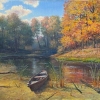 Vyacheslav Alatyrsky’s painting “Autumn on the Cheremshan” is a lyrical landscape imbued with love for Russian nature and its autumn attire. Using a saturated, yet harmonious color palette and the technique of Realism with elements of Impressionism, he creates an atmosphere of calmness, peace, and light melancholy characteristic of the moment of fading nature and the approach of winter. It is not just an image of a river, a forest, and the sky, but like a visual embodiment of the Russian soul, its connection with its native land, its скромной beauty, and its ability to find утешение and inspiration in the most ordinary things.