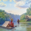 Vyacheslav Alatyrsky’s painting “Gifts for Misha” presents a bright and joyous landscape with elements of a genre scene in which the artist celebrates the beauty of Russian nature and the warmth of human relationships. Using a saturated, yet gentle color palette and a realistic manner of writing, he creates an atmosphere of calmness, tranquility, and kindness characteristic of scenes from rural life. It is not just an image of a river, a forest, and people, but like a visual embodiment of care, attention, and love for one’s neighbor, manifested in simple and sincere acts.