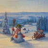 Overall, the painting conveys a sense of joy, fun, and a winter wonderland. It seems to invite the viewer to pause for a moment and experience the festive atmosphere, warmth, and carefreeness.