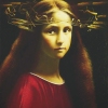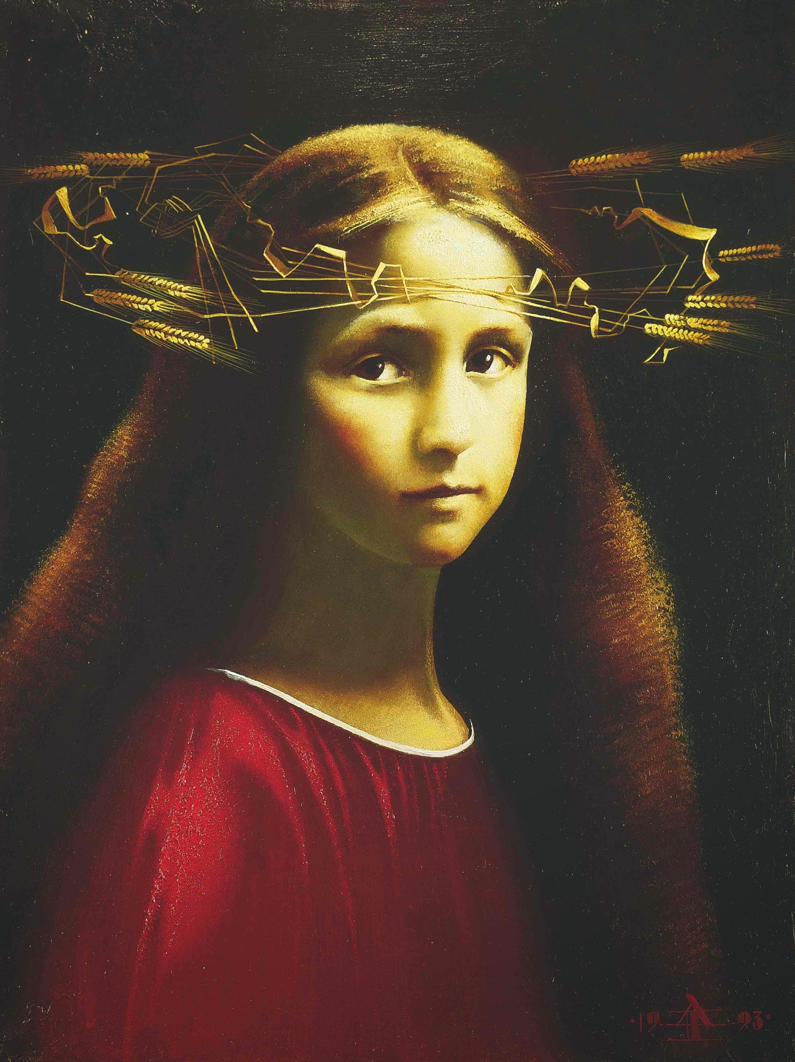 Young Maria is curiously looking at the viewer. The world which she has entered is rigid, and the people are unmerciful. But kindness of the divine girl will redeem the faults of mankind as her future Son will redeem the sins of the world by self-sacrifice.