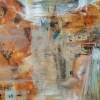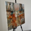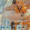 Нижняя и средняя части полотна — это буйство тёплых цветов. Доминируют насыщенные оранжевые, ржаво-красные и золотисто-жёлтые оттенки, смешанные с холодными вкраплениями бирюзового и тёмно-зелёного. Эти цвета нанесены широкими энергичными мазками, словно художник передает сияние, отражения и вибрацию воздуха. В правом нижнем углу видны длинные веерообразные мазки, напоминающие движение травы или воды, освещённой солнцем.