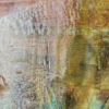 Художник использует сложную технику наложения и соскабливания краски, что придает поверхности холста невероятную фактурность. Кажется, что мы видим не просто краски, а слои мха, опавшие листья и проступающие из-под них камни. По всей картине видны горизонтальные и вертикальные штрихи, которые могут напоминать дождевые потоки, пробивающиеся сквозь листву, или корни, уходящие в почву.
