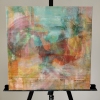 Композиция картины выдержана в мягких, пастельных, но в то же время насыщенных тонах. Преобладают приглушенные оттенки бирюзового, голубого, зеленого и охристо-желтого, смешанные с красно-оранжевыми пятнами. Эти цвета нанесены полупрозрачными слоями, создавая эффект дымки, тумана или старой выцветшей фотографии.