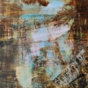 Композиция картины выдержана в приглушенной, но насыщенной цветовой палитре. Преобладают землистые тона: темно-коричневые, охристые и ржаво-красные оттенки, смешанные с холодными вкраплениями бирюзового и голубого. Эта гамма напоминает старинные карты, выцветшие фрески или пейзаж, видимый сквозь туман.