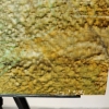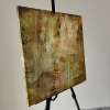 Композиция картины погружает зрителя в атмосферу природного явления. Преобладают теплые землистые оттенки: охра, горчично-желтый, коричневый и приглушенный зеленый, смешанные с мягкими, размытыми пятнами бирюзового и белого. Эта цветовая гамма создает ощущение влажной почвы, скал и водяной пены, разбивающейся о препятствия.