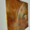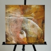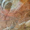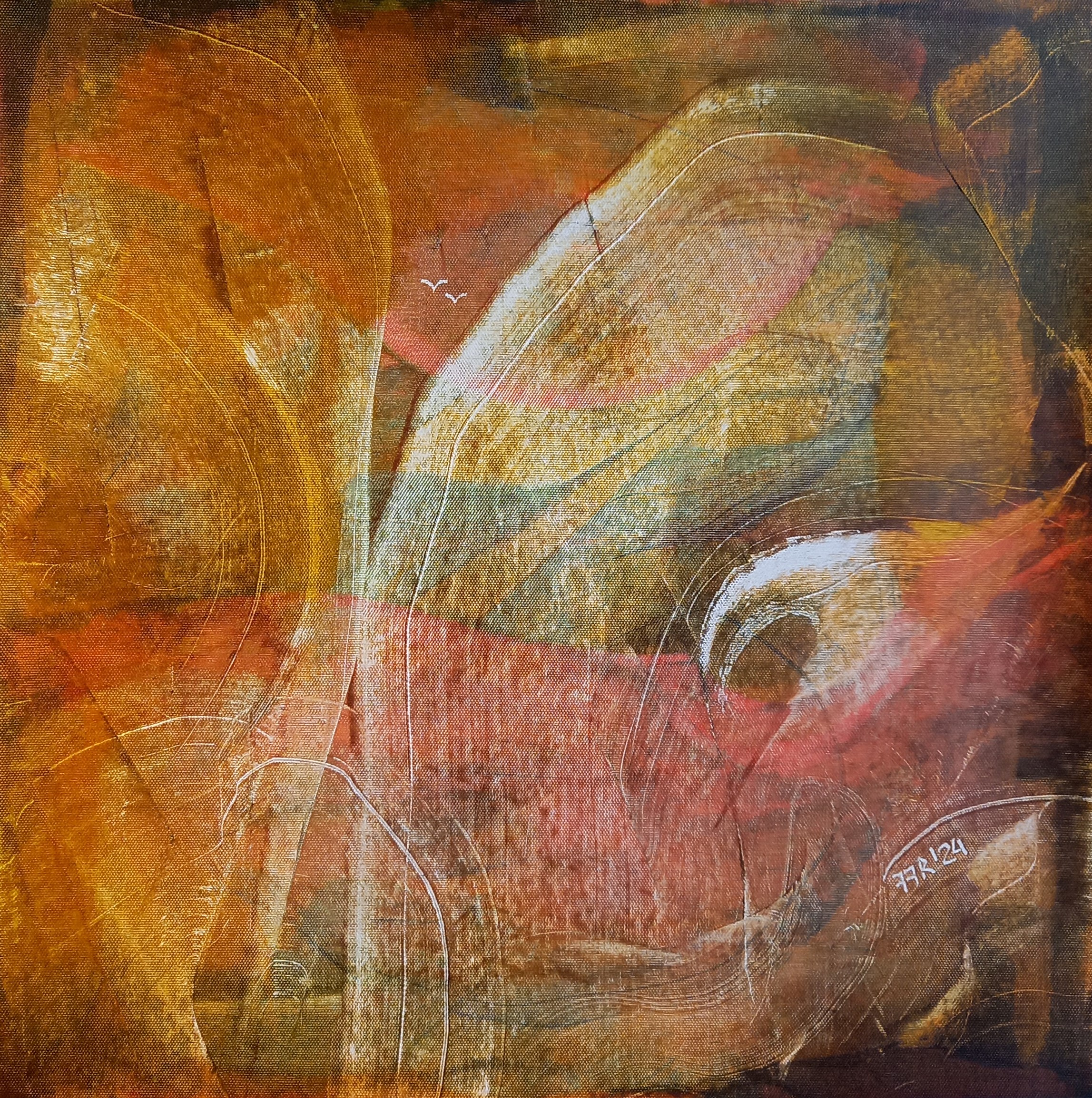 Композиция картины выдержана в теплой, землистой палитре с преобладанием оттенков охры, золотистого, ржаво-красного и коричневого. Эти цвета создают ощущение жаркого климата, африканских пейзажей или древней, первобытной земли. Мягкие розовые и бледно-голубые вкрапления придают картине глубину и тонкие нюансы.