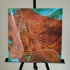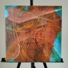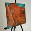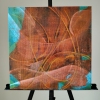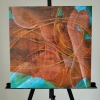 Композиция картины представляет собой мощный вихрь тёплых цветов. Доминируют насыщенные оттенки красного, оранжевого и землисто-коричневого, которые создают ощущение огня, энергии и необузданной страсти. Эти яркие тона контрастируют с вкраплениями глубокого синего и бирюзового по краям, что придаёт работе глубину и динамику, как будто холодные элементы пытаются сдержать бушующее пламя, но не могут.
