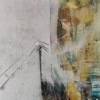 В верхней части картины можно различить вертикальные и горизонтальные формы, напоминающие здания, окна или тесные улочки. Художник использует технику соскабливания и наложения слоев краски, что придает поверхности холста невероятную фактурность. Видны следы широких мазков и царапин, создающих ощущение городской суеты, граффити или следов времени на стенах.