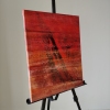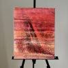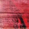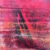 В центральной части картины, среди красного вихря, можно различить тёмные угловатые формы, напоминающие скалы или камни. Эти формы кажутся не статичными, а изогнутыми и деформированными под воздействием невидимой силы. Их силуэты, словно выветренные временем, подчёркивают длительность и интенсивность воздействия. Яркие красные полосы, пронизывающие эти «каменные» формы, усиливают ощущение внутренней энергии и сопротивления.