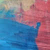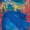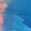 Композиция картины построена на контрасте тёплых и холодных тонов. В центре доминирует большое выразительное синее пятно, по форме напоминающее массивное тело животного, возможно, свиньи, если дать волю воображению и дорисовать детали. Этот глубокий и насыщенный синий цвет создаёт ощущение спокойствия и прочности.