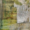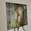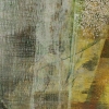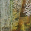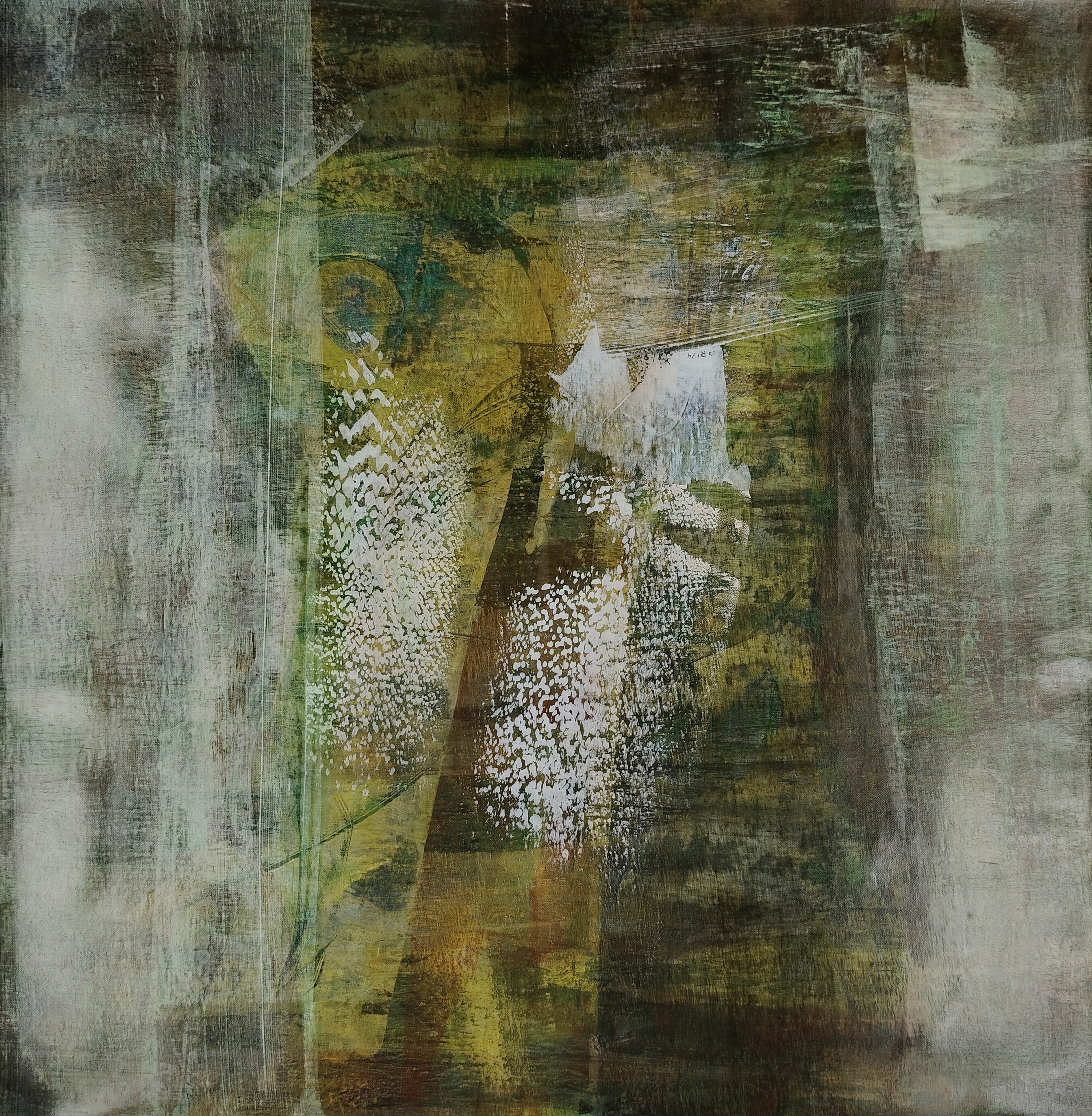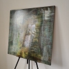 Художник активно использует технику наложения и соскабливания краски, что придает поверхности холста невероятную фактурность. Видны следы широких вертикальных мазков, царапин и потертостей, которые создают ощущение густой листвы, древесной коры или тумана, окутывающего лесную чащу.