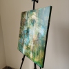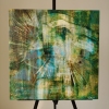 Композиция картины выдержана в сложной, но гармоничной палитре. Преобладают глубокие зеленые, изумрудные и землисто-коричневые оттенки, которые создают ощущение леса, природы или внутренней глубины. Эти холодные тона контрастируют с мягкими золотистыми, охристыми и даже едва заметными красными вкраплениями, которые придают работе теплоту и живость.