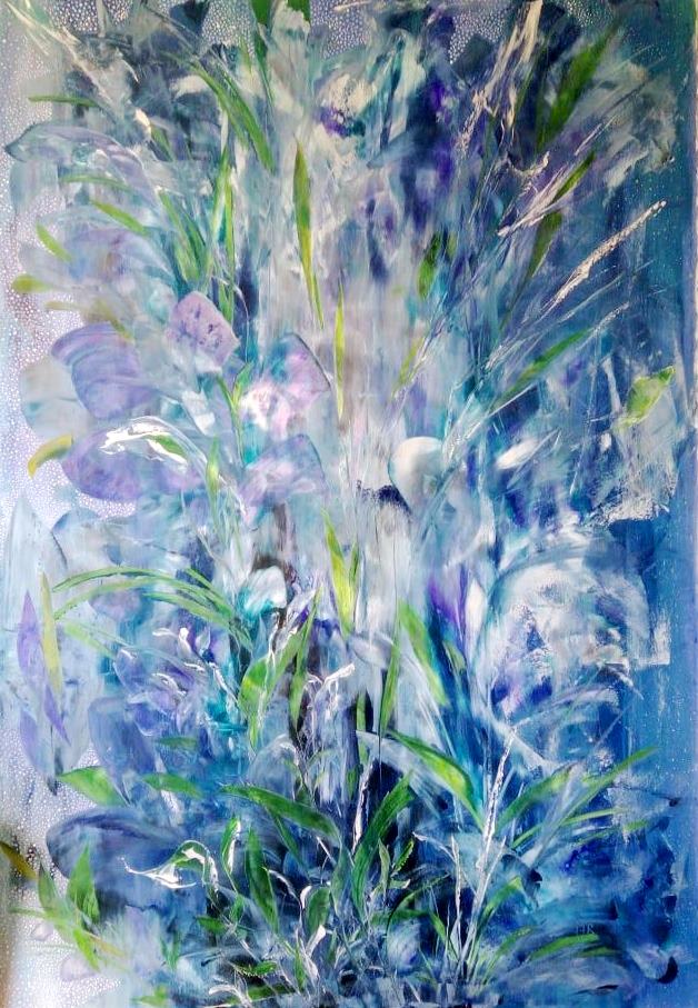 The painting “White Queen” is an abstract canvas filled with delicate shades of blue, white, and purple, which intertwine to create an image that evokes associations with winter, purity, cold grandeur, and perhaps, the image of the White Queen herself – a mysterious and detached ruler of the winter kingdom. The artist, using expressive brushstrokes and play of light, creates an atmosphere of magic, mystery, and some melancholy characteristic of the cold season.