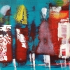 At the center of the composition are vertical and horizontal stripes intersecting each other and creating a sense of ordered chaos. These stripes seem to be images of people, their lives, their stories, which intertwine and collide in the process of communication. The red, blue, yellow, and white colors dominating the painting symbolize various emotions and moods that accompany human communication: passion, tranquility, joy, and sincerity.