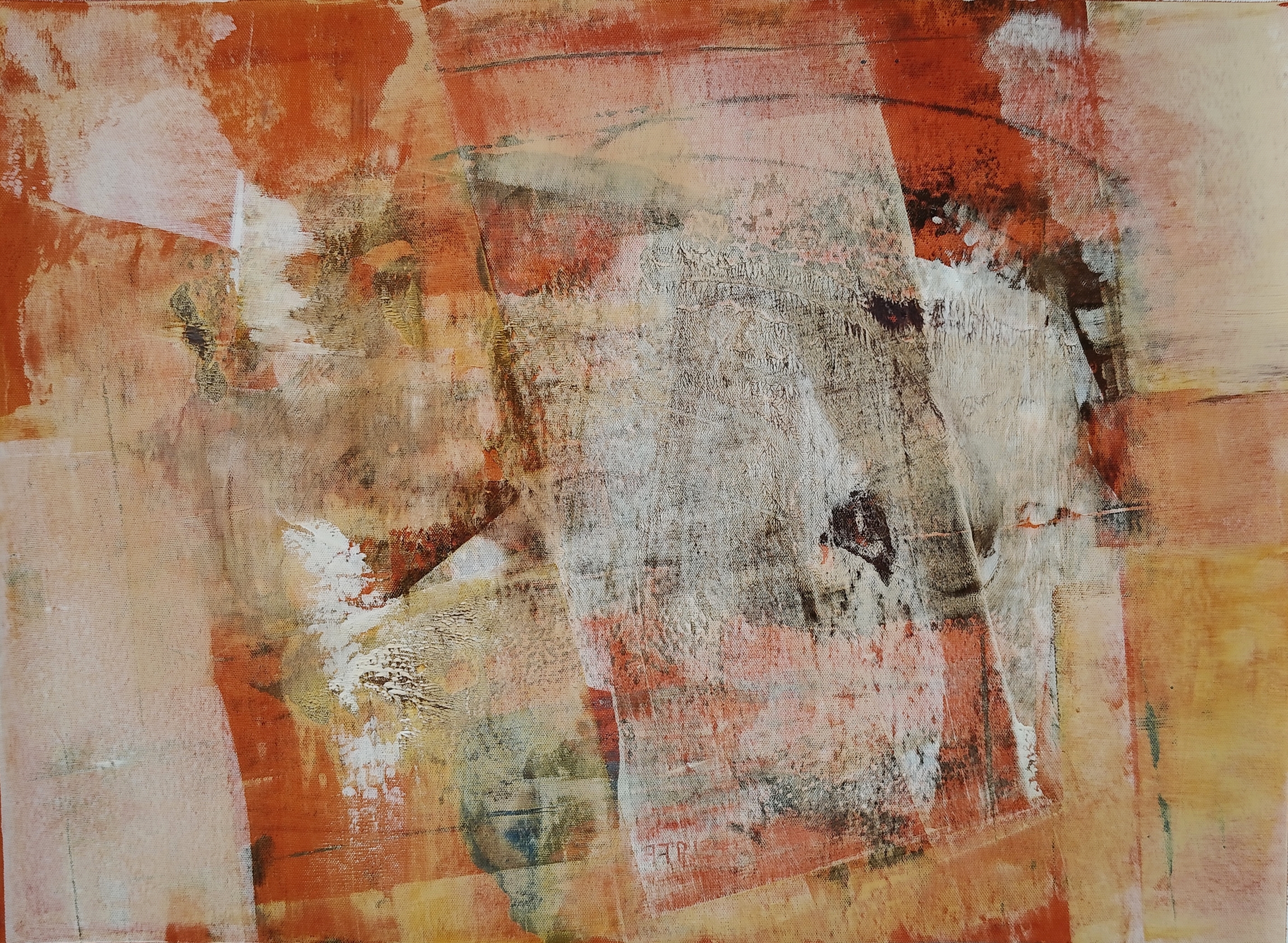The color palette of the work is soft and harmonious, with a predominance of warm shades of orange, yellow, and brown, which create a feeling of sunlight and warmth. These colors intertwine with cool shades of blue and green, adding depth and multifacetedness.