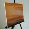At the center of attention are horizontal brushstrokes, creating a feeling of layering and depth. The dark, almost earthy tones at the base of the painting seem to symbolize solid ground, while the fiery top represents the sky, full of energy and passion.