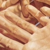 In many of Ksenia Zavarzova's paintings, human relationships are shown through various forms of touch. If the touch itself is a visual element, then the family connection, although not depicted directly, is still an important spiritual part of the painting. The work "Hands 1" is about mutual assistance and support of those who are nearby. On the canvas, we see outstretched hands that strive towards each other, creating a single whole.