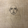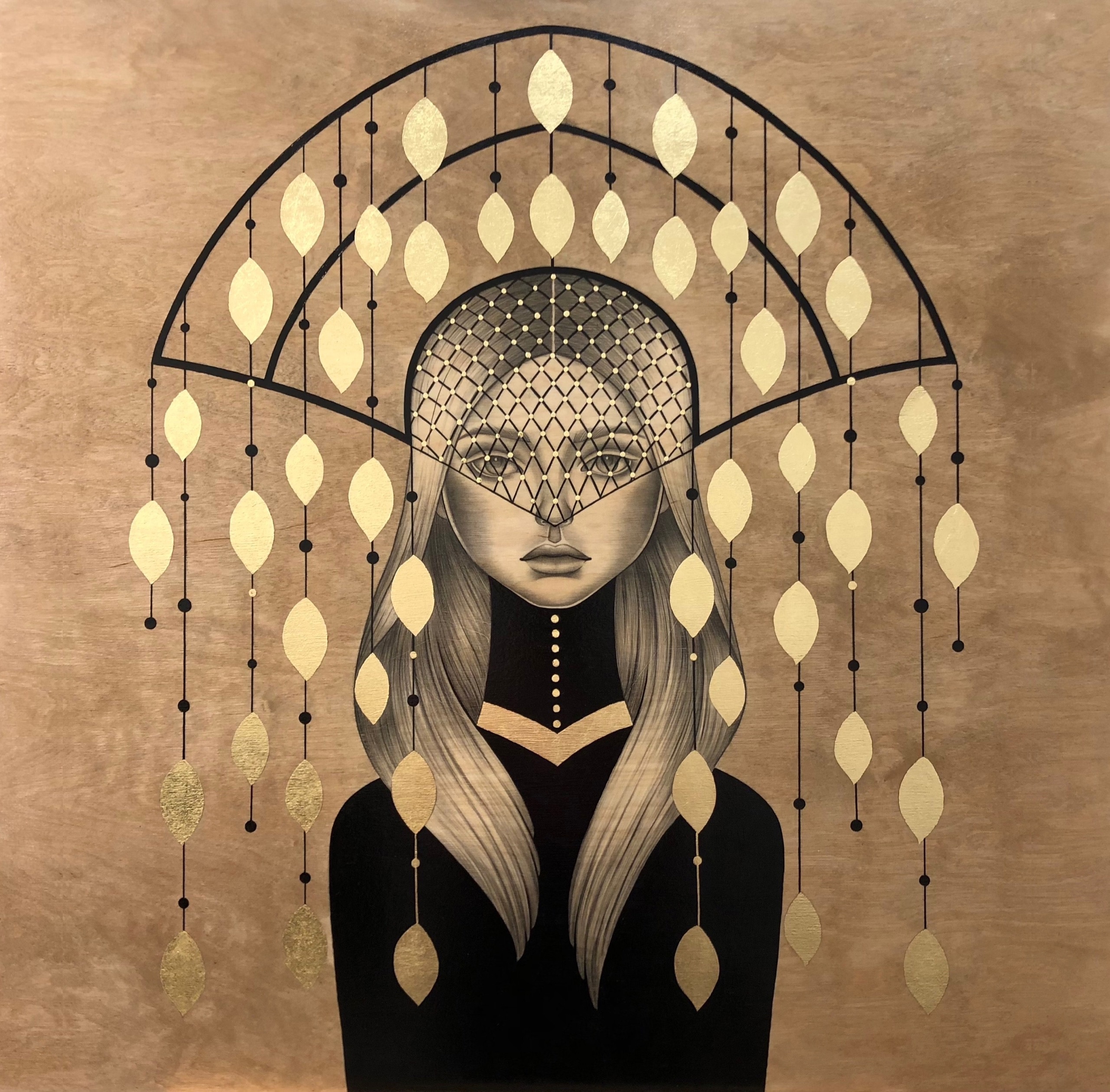 Mixed media on wood: pastel, acrylic, wood stain, metal leaf