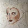 Mixed media on wood: pastel, acrylic, wood stain, silver leaf