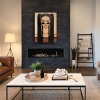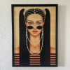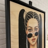 The painting is framed in a modern black frame with a hanging system.