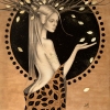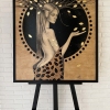 Mixed media on wood: pastel, acrylic, wood stain, metal leaf