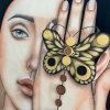 The painting is part of a series called PROTECTORS, in which I use real coins from around the world in jewelry design.