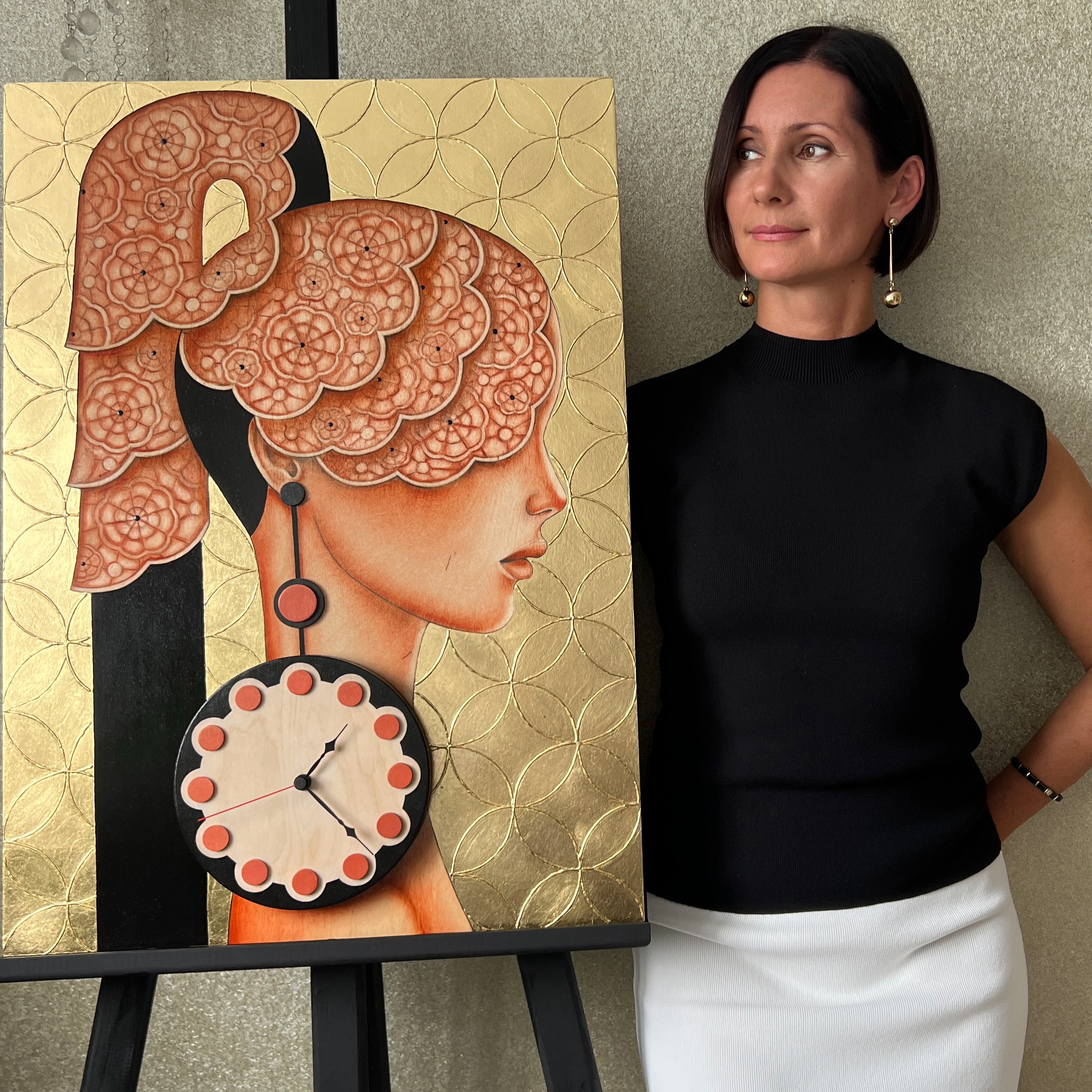 The coins in my paintings blend so organically with the ornament, decoration, composition, and female image that I realized the deep meaning of the series: it lies in the balance of the spiritual and the material. The balance of these aspects brings harmony and beauty, both on the canvas and in real life. If one side becomes dominant, the balance is disturbed, and harmony disappears.