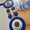 I used traditional ornaments from Russian folk crafts: Gzhel and Khokhloma. I have a special reverence for these two types of painting. My first education was as a wood painting artist, and the very first painting style I encountered was Khokhloma. I became acquainted with Gzhel a little later when I worked in Moscow workshops.
