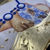 The golden background on the paintings. According to one version, the origin of the golden background in Khokhloma is attributed to Old Believer icon painters who transferred the gilding technique from icons. I also wanted to reflect this story in my works.