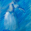 At the center of attention, of course, is the dancer. Her figure, rendered in halftones and shades of blue, seems to emerge from a blue haze, dissolving into it. Her pose is dynamic, her body slightly inclined forward, her arms gracefully extended, and her skirt seems about to take off from a gust of wind. In this pose, one can read grace, plasticity, and inner energy inherent in ballet dance. The artist avoids sharp lines and details, focusing on the overall impression of the movement.
