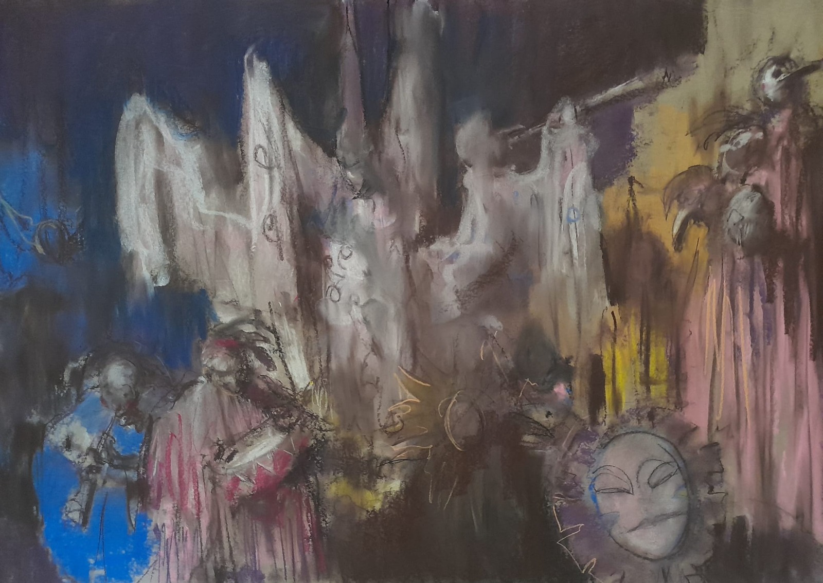 “Carnival” in Bakin’s interpretation is not only an external manifestation of fun and revelry but also a deep internal process related to the search for the meaning of life, the liberation from stereotypes, and the cognition of one’s true essence. The artist uses the image of the carnival to explore themes of hypocrisy, deceit, loneliness, and the search for meaning in a world full of contradictions.