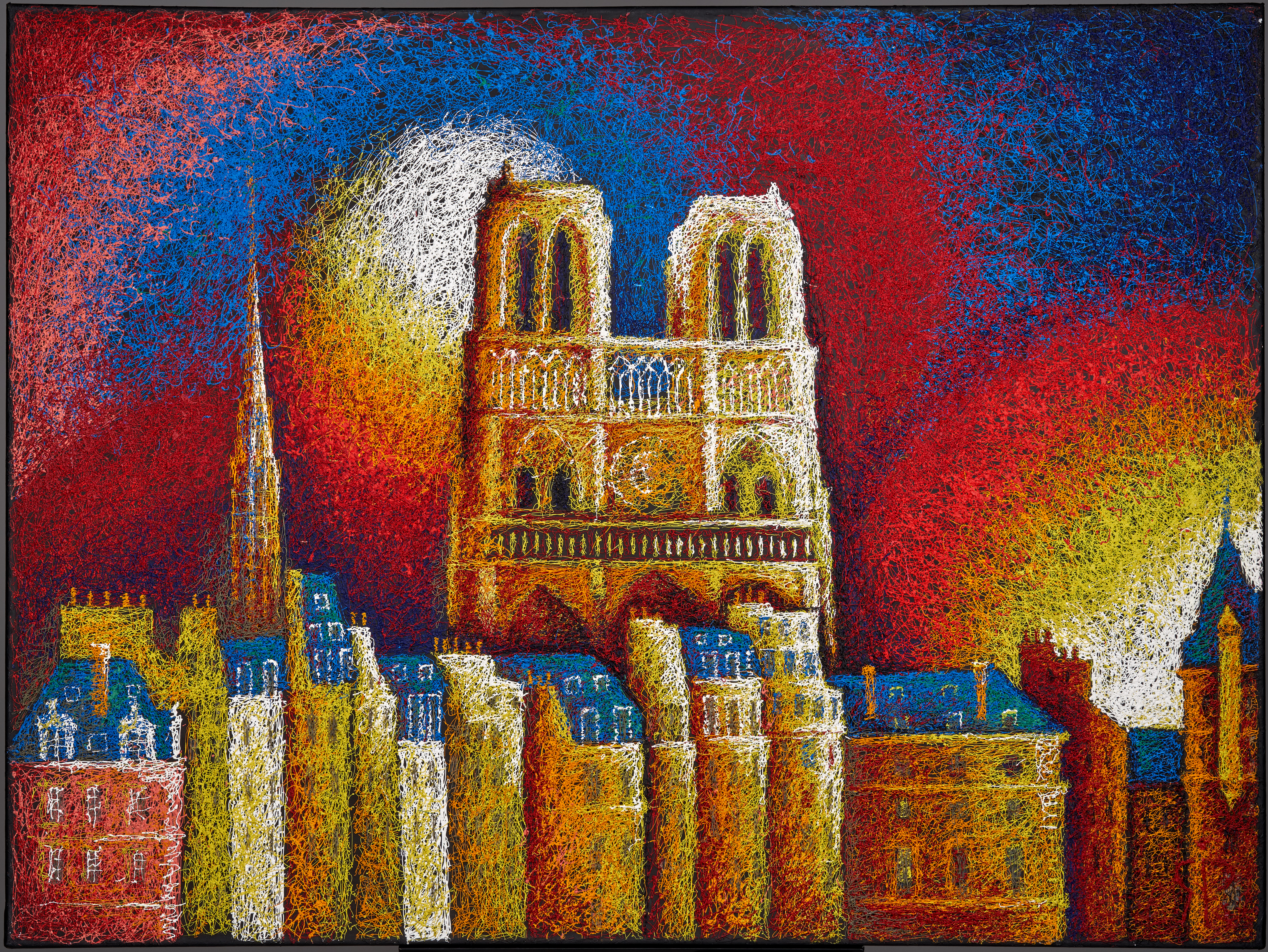 The painting was painted using a unique patented technique called "Philumism". The essence of the "Philumism" technique is that the artist paints not with a brush, but with a syringe, squeezing paint through a needle and laying it on the surface of the canvas in the form of thin colored threads, creating a kind of non-woven acrylic tapestry. The artist uses traditional canvas, acrylic threads.