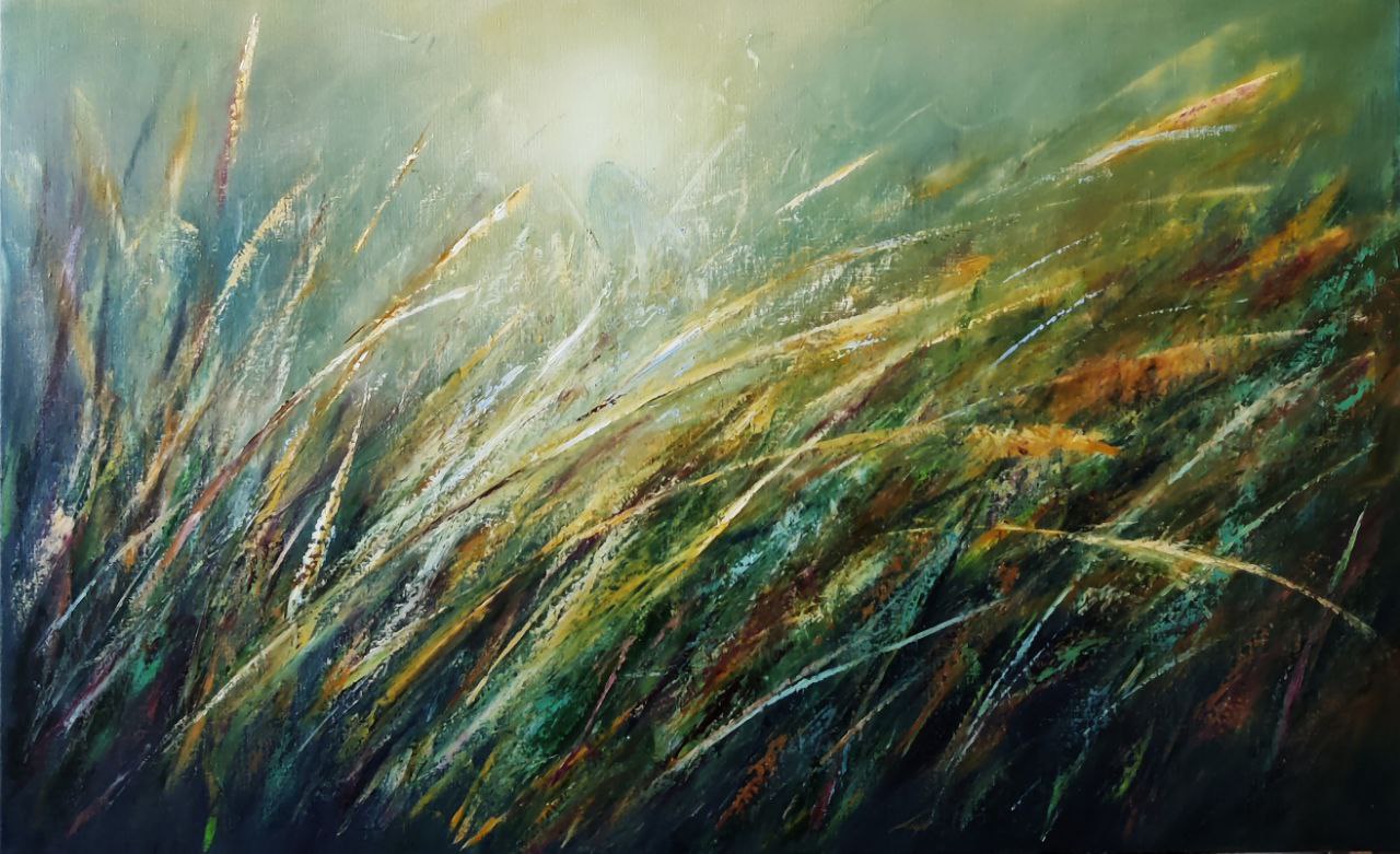 The painting "A mother's light" is filled with a tremulous feeling of love, care and unconditional acceptance, which are associated with the image of a mother. Before the viewer is a picturesque scene, where in the center of the composition the sun's rays softly shimmer, breaking through dense thickets of grass. The painting seems to be filled with an inner light that envelops the entire space and colors it with gentle, warm shades. Here, every stroke is like the touch of a caring hand, in every bend of the stem there is some kind of protection and guardianship.