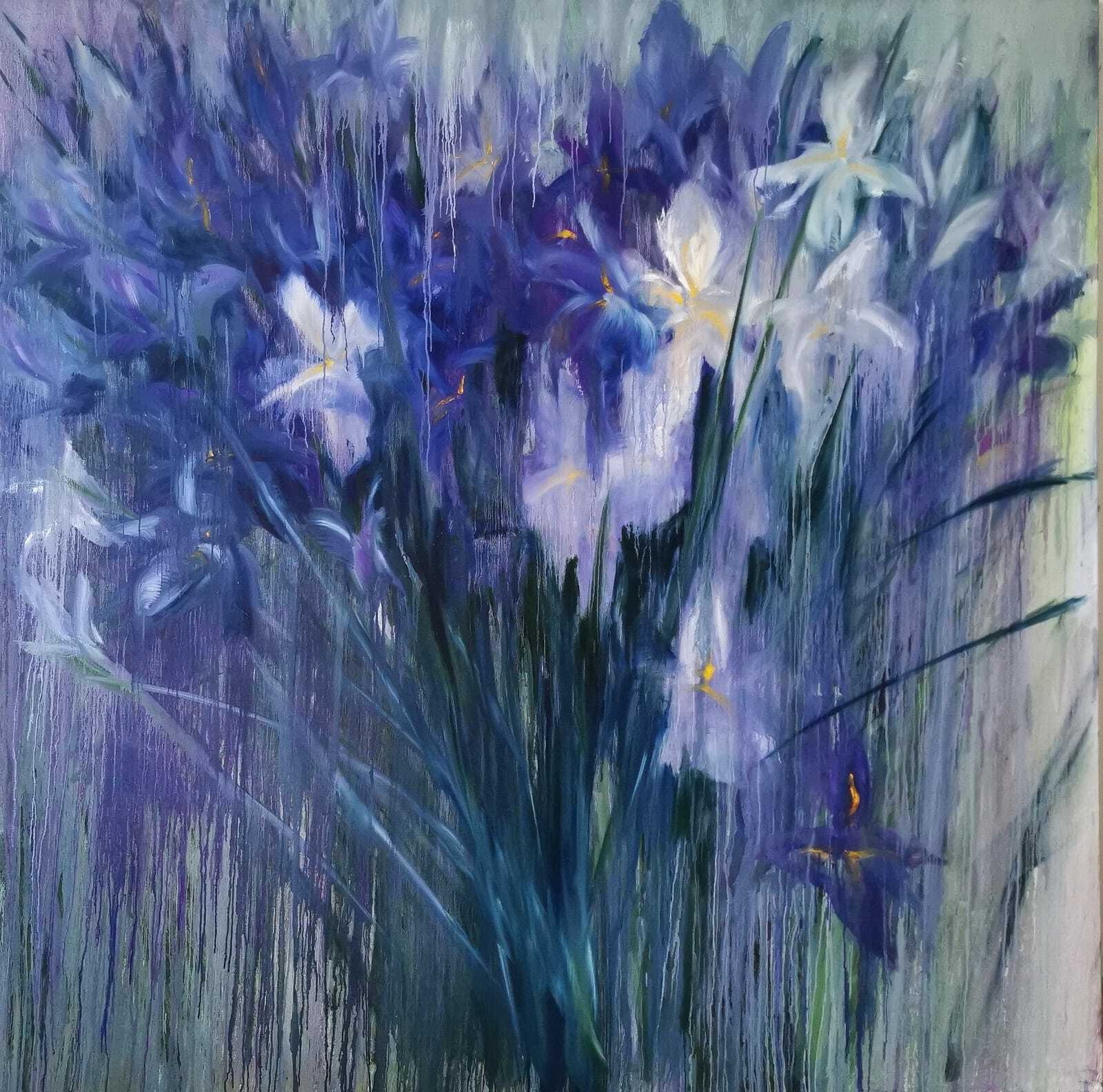 Bud after bud, stem after stem, everything is intertwined into a single luxurious mass of irises living one common life, but at the same time each element is unique. The majestic range of violet and blue shades evokes associations with mysterious twilight, with the coolness of a summer evening and the aroma of freshly picked flowers. The painting calls to stop, to fill with silence and to be imbued with the magic of the moment. "Bouquet of Irises" is a connection between the past and the future, mystery and tenderness, poetry of light and shadow, which make the canvas a genuine artistic experience for each viewer.